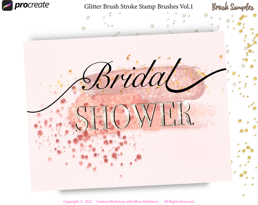 Procreate 74 Glittered Brush Stroke Stamp Brushes + 60 Colors