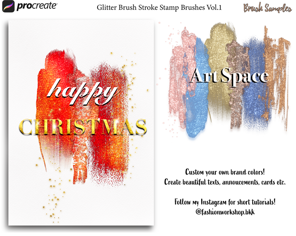 ✨This unique brush set was first published in October 2022.✨These brushes work with Procreate App on iPad only and recommend using with ApplePencil for sensitive pressure brushes and multicolor effect. If your stylus doesn't work with pressure sensitive in Procreate app, the multicolor brush won't work. The glitter stamp brushes work on light background and dark background. You don't need to create shadow or any overlay :)