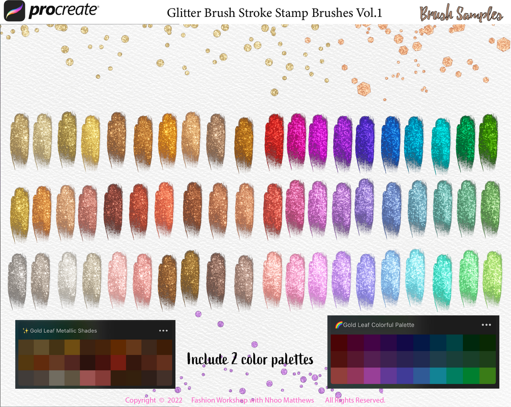 74 Glitter Brush Stroke Procreate Stamp Brushes Vol.1 Metallic Glitter Textures Unicorn Glitter Brush. Gold Metallic Color Palettes.
