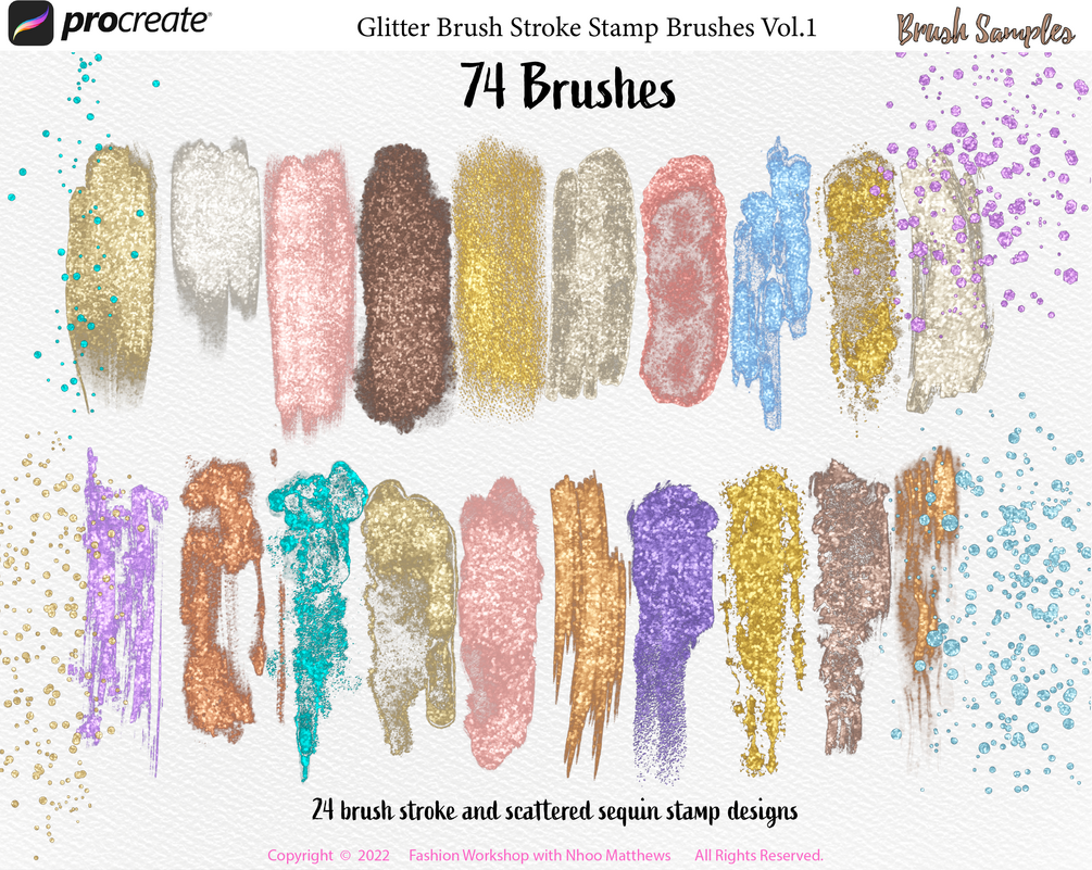 Procreate 74 Glittered Brush Stroke Stamp Brushes + 60 Colors