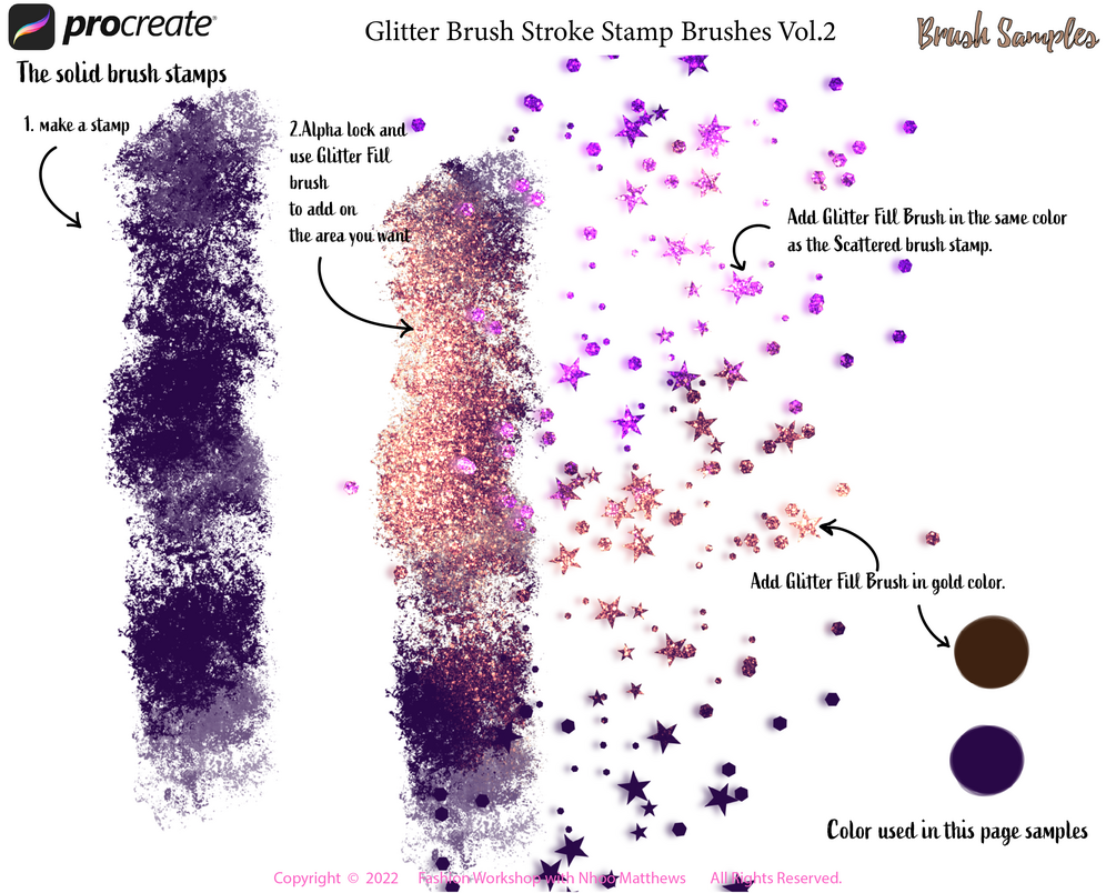 77 Glitter Brush Stroke Procreate Stamp Brushes Vol.2 Metallic Glitter Textures Unicorn Glitter Brush. Gold Metallic Color Palettes.