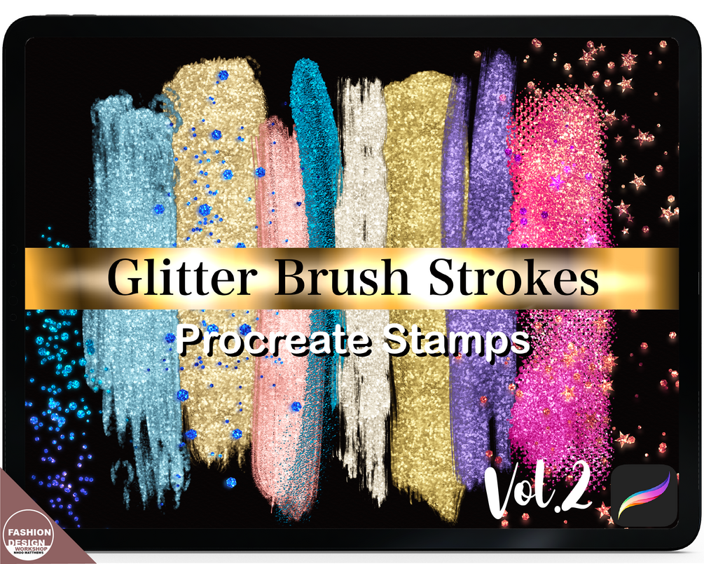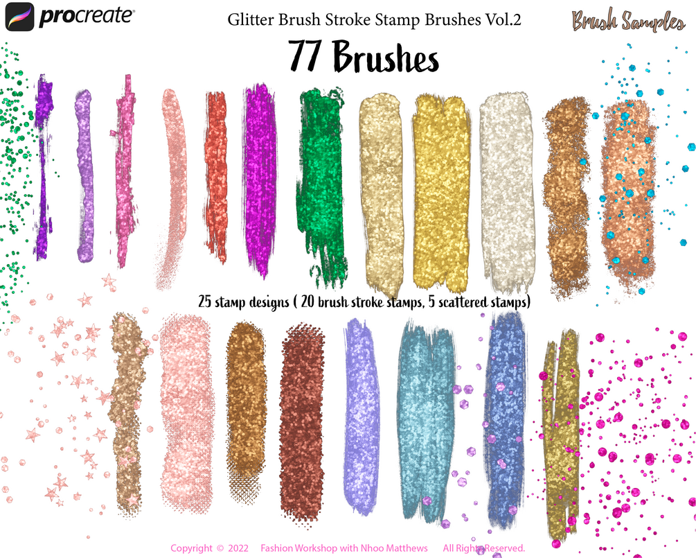 Procreate 77 Glittered Brush Stroke Stamp Brushes + 60 Colors