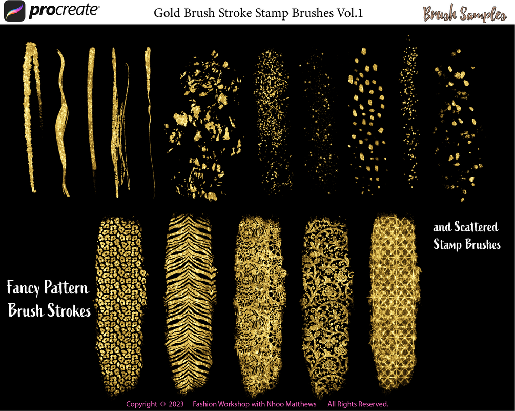 Procreate 66 Gold Brush Stroke Stamp Brushes + 60 Colors