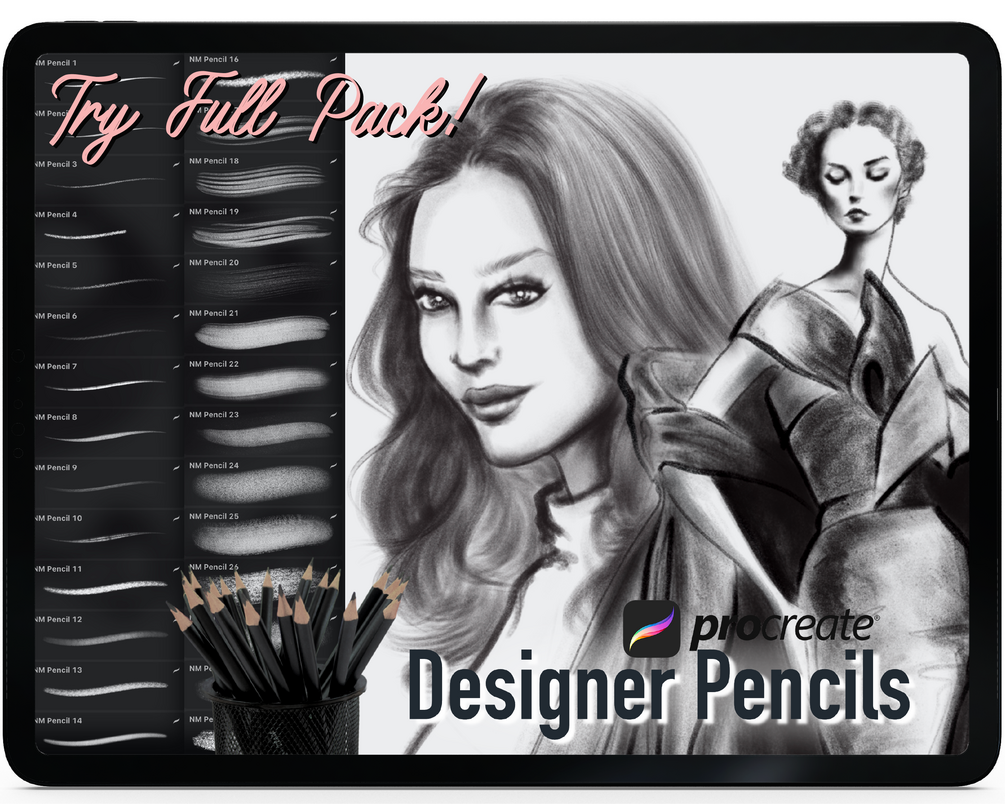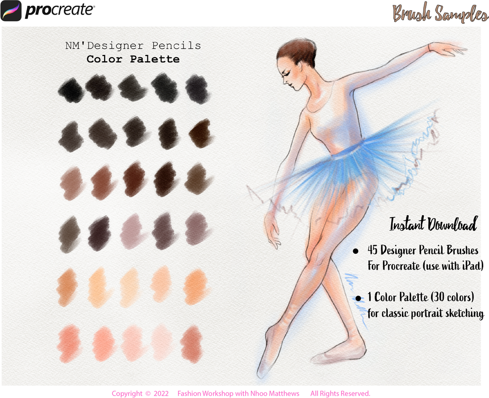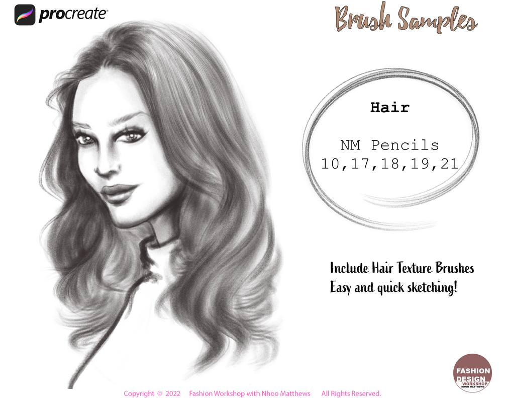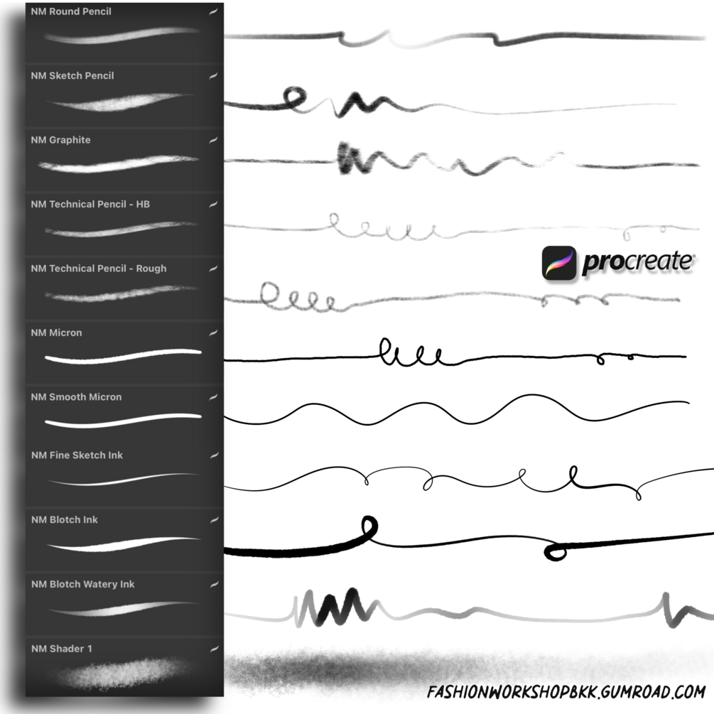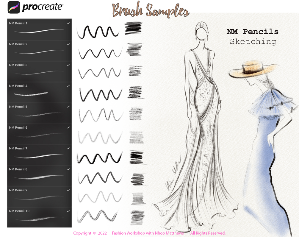 *NM Basic Sketch Set* Procreate Brushes. Pencils, Inks, Microns, Shader, 11 Testers by Fashion Workshop with Nhoo Matthews