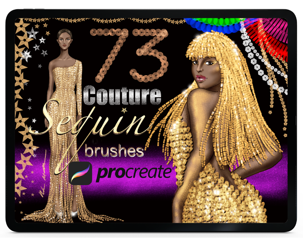 73 Procreate Couture Sequin Brushes + PDF eBook tutorial