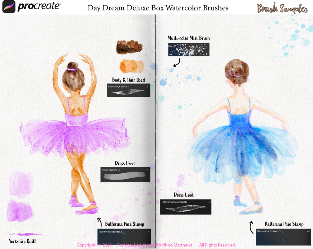 DELUXE BOX Day Dream Watercolor. 114 Procreate Watercolor Brushes, Fashion & Ballerina Stamps, Digital Paper, Metallic Brush, Video Tutorial