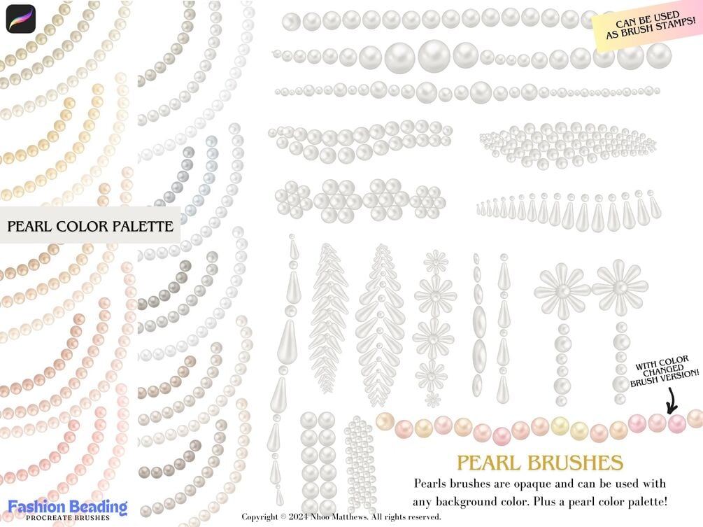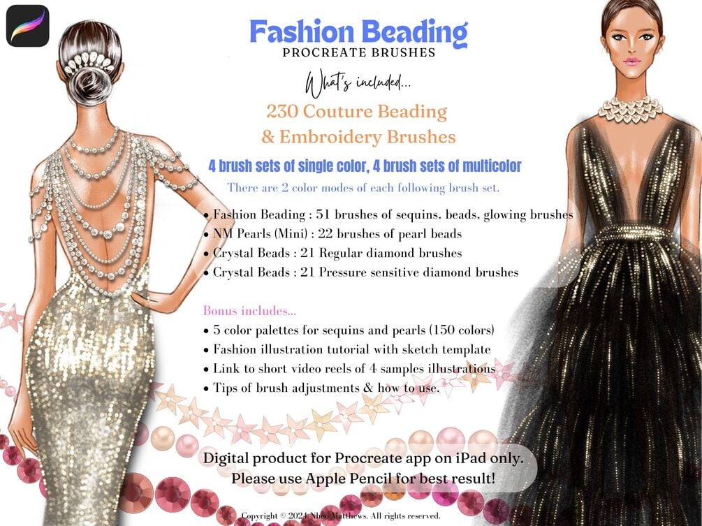230 Fashion Beading Procreate Brushes, 5 Color Palettes, PDF & VDO Tutorials