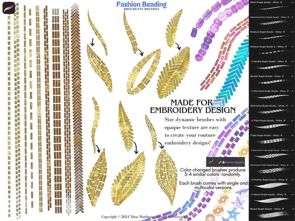 Fashion Beading Procreate Brushes + Tutorial. 230 Embroidery, Sequins, Pearls, Diamonds Brushes