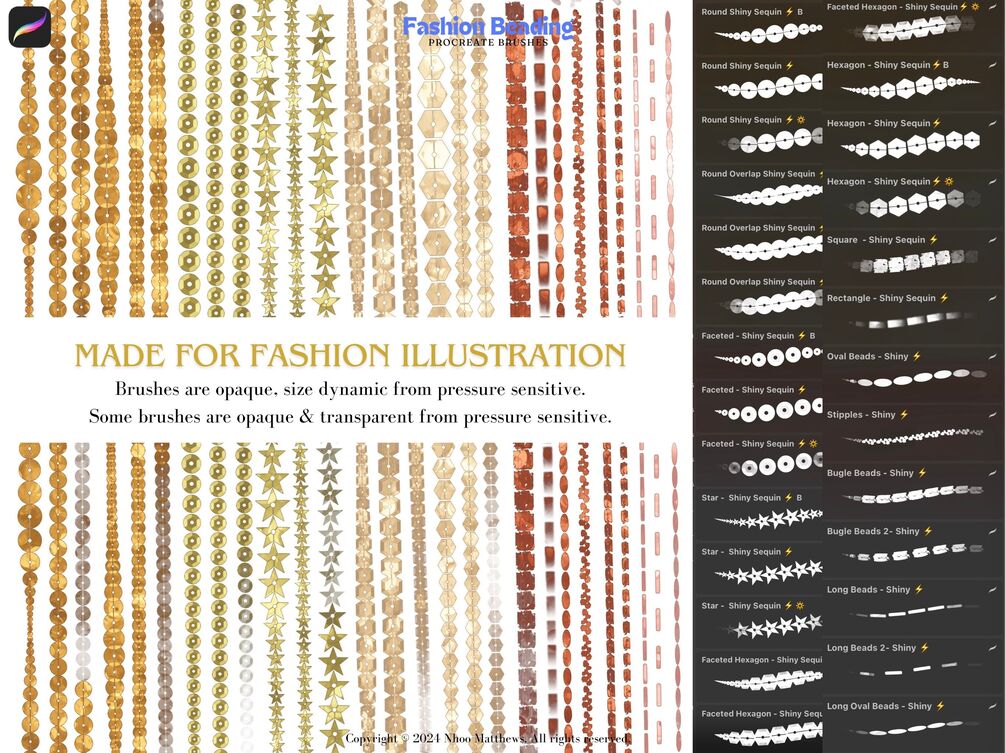 • Fashion Beading : 51 brushes of sequins, beads, glowing brushes