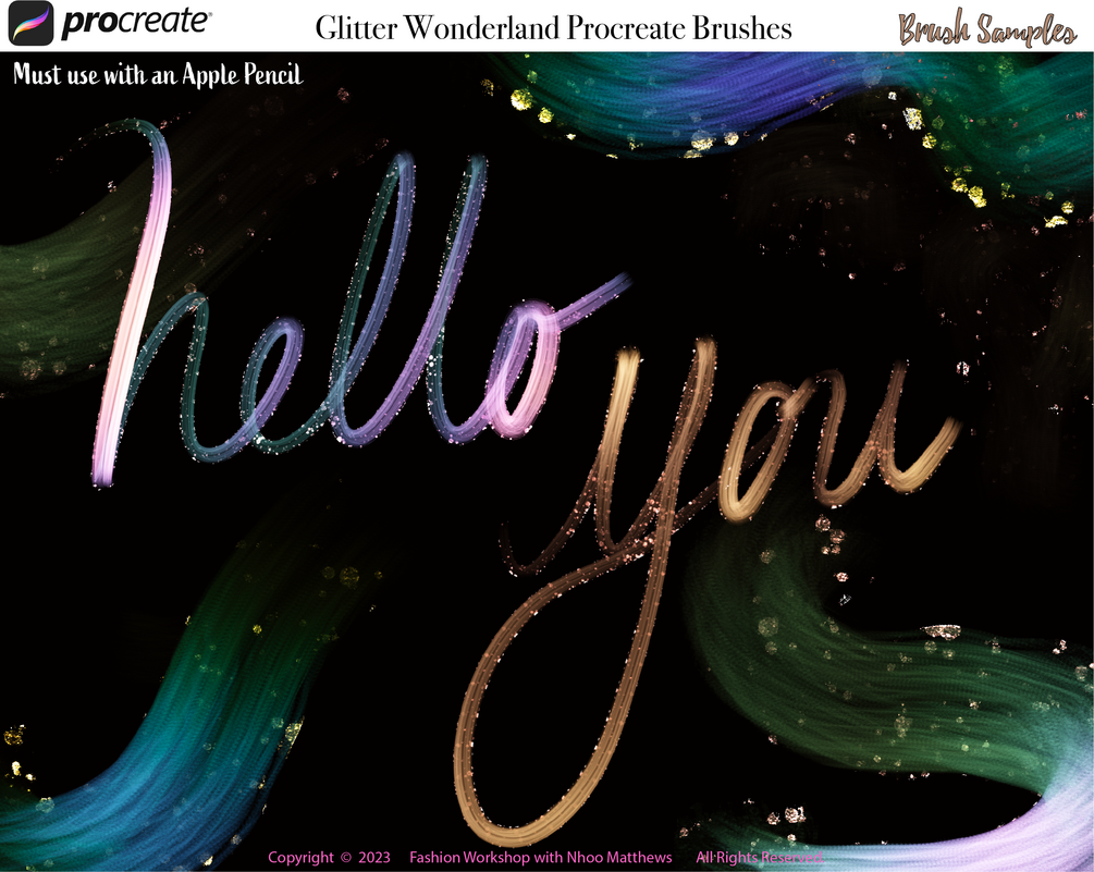 Procreate 61 Glitter Wonderland Metallic Brushes + 60 colors