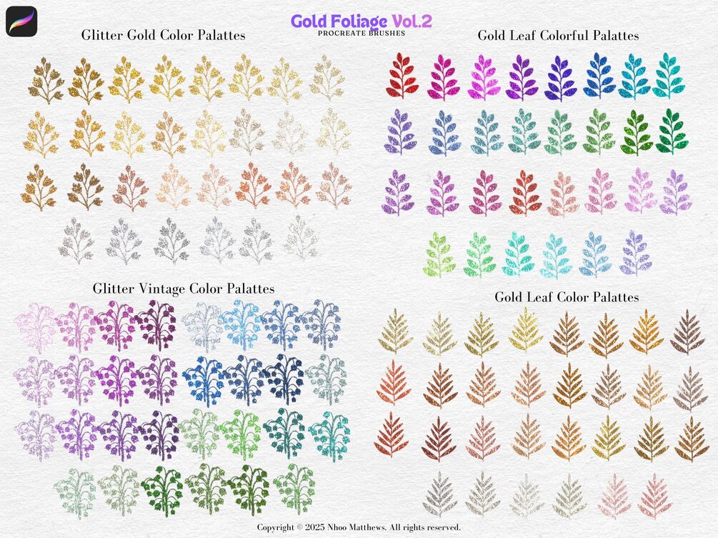 100 Gold Foliage Vol.2 Procreate brushes + 4 color palettes