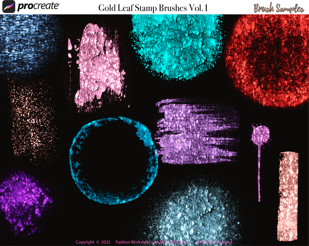 Procreate 30 Gold Leaf Metallic Stamp Brushes + 60 Colors
