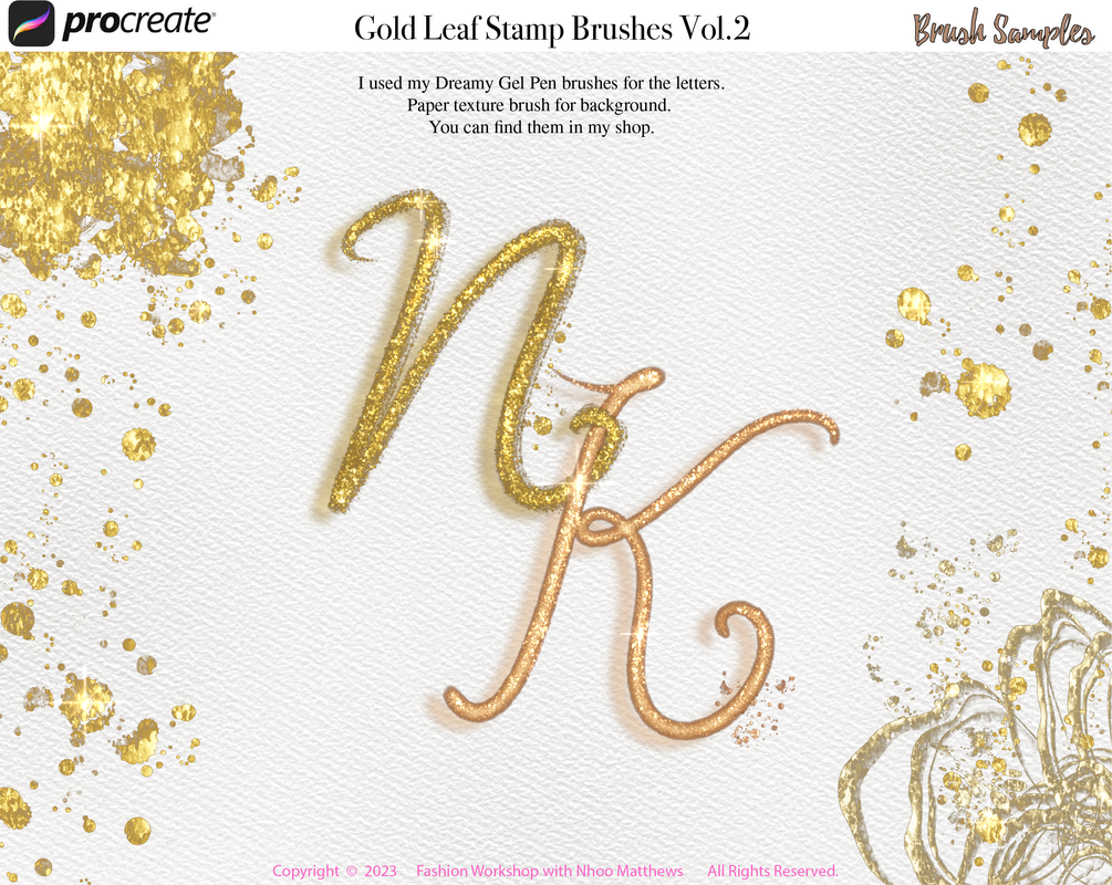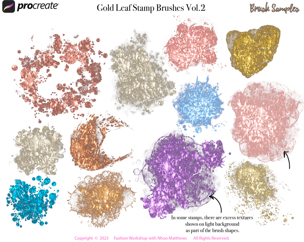 Procreate 30 Gold Leaf Metallic Stamp Brushes + 60 Colors