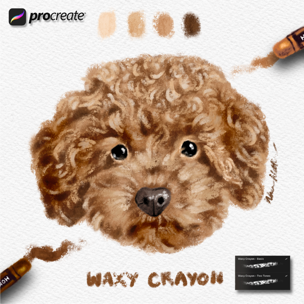 This brush pack was made out of curiosity when someone on a Procreate group posted a photo of an actual pastel drawing and asked where to get pastels or crayons Procreate brushes just like this. So I went ahead and played with the brush making process! I used real oil pastels with different types of art paper to create textures and used those for producing many of these brushes. Creating the brushes was so much fun. But creating artworks while using these brushes was a joy! I hope you have the same experience as I did.