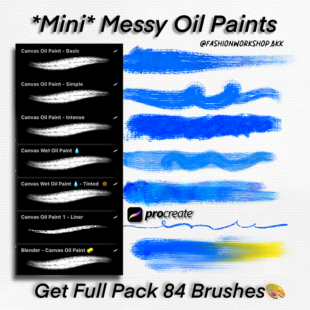 *Mini* Procreate Messy Impressionist Oil Paints Brushes (7 brushes). Full Pack 84 Thick Realistic Gouache, Acrylic, Palette Knife, Wet & Dry Oil Brushes.
