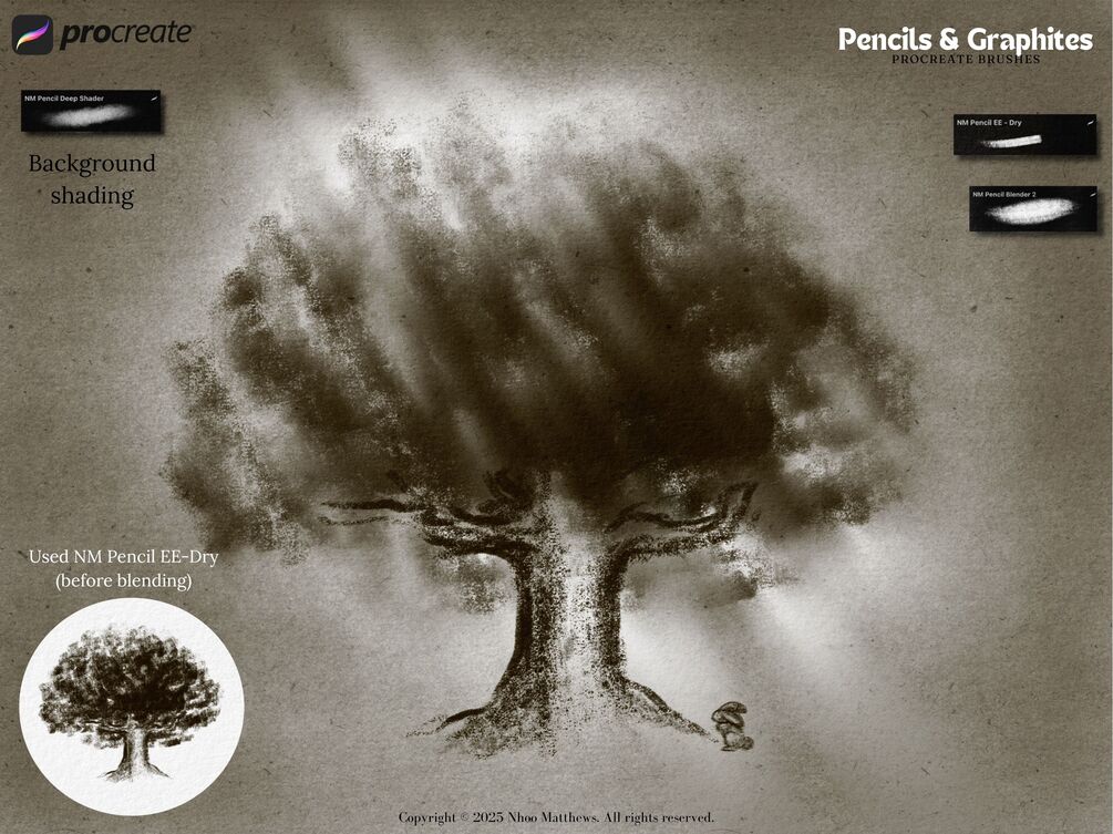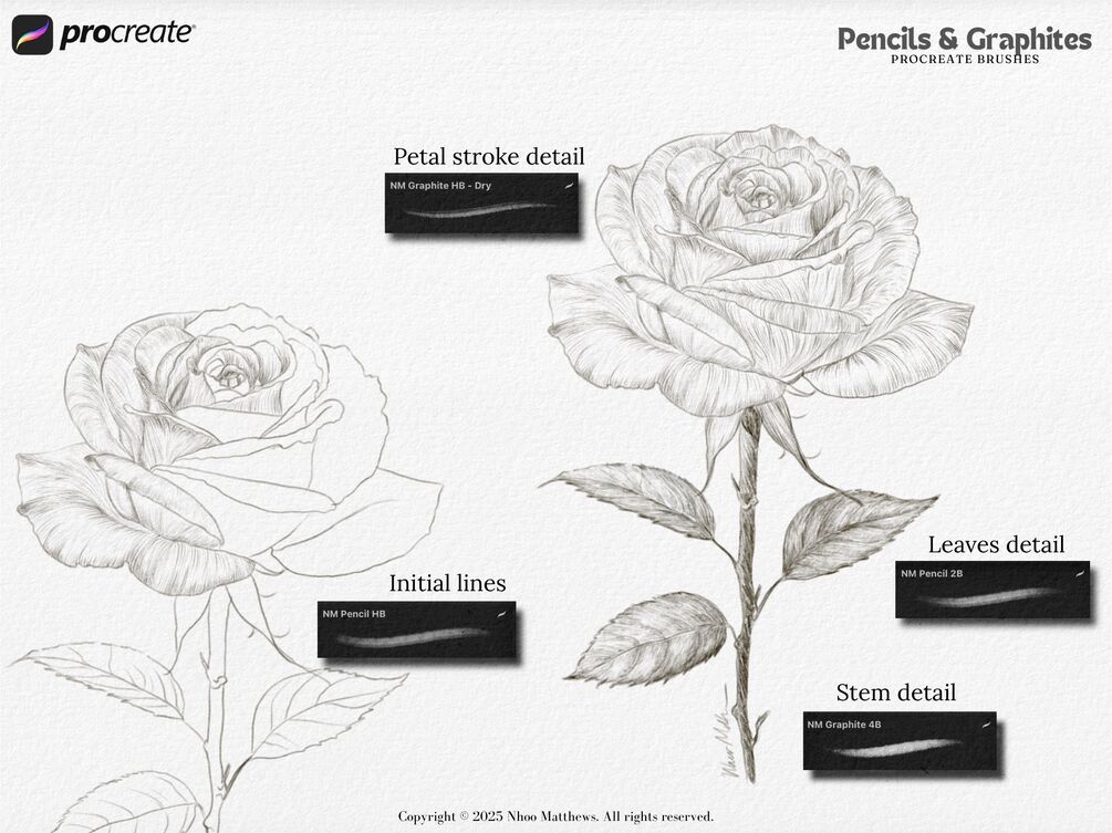 Realistic Pencils and Graphites Procreate brushes offer versatile usages to create portraits and all sketching art. The brush pack has variety of pencil intensity from EE, 8B, 6B, 4B, 2B, HB, 2H, 4H, and 6H. They work great with a pressure sensitive mode on Apple Pencil so you can sketch with confident. The brushes have different pencil textures which give you a flexibility to choose whether a soft or harsh dried textures.