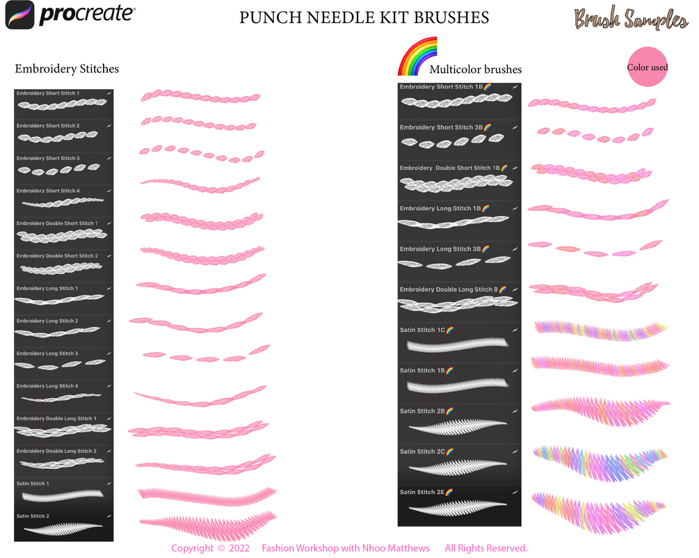 Procreate 53 Punch Needle Embroidery Stitch Brushes + Video and eBook Tutorial